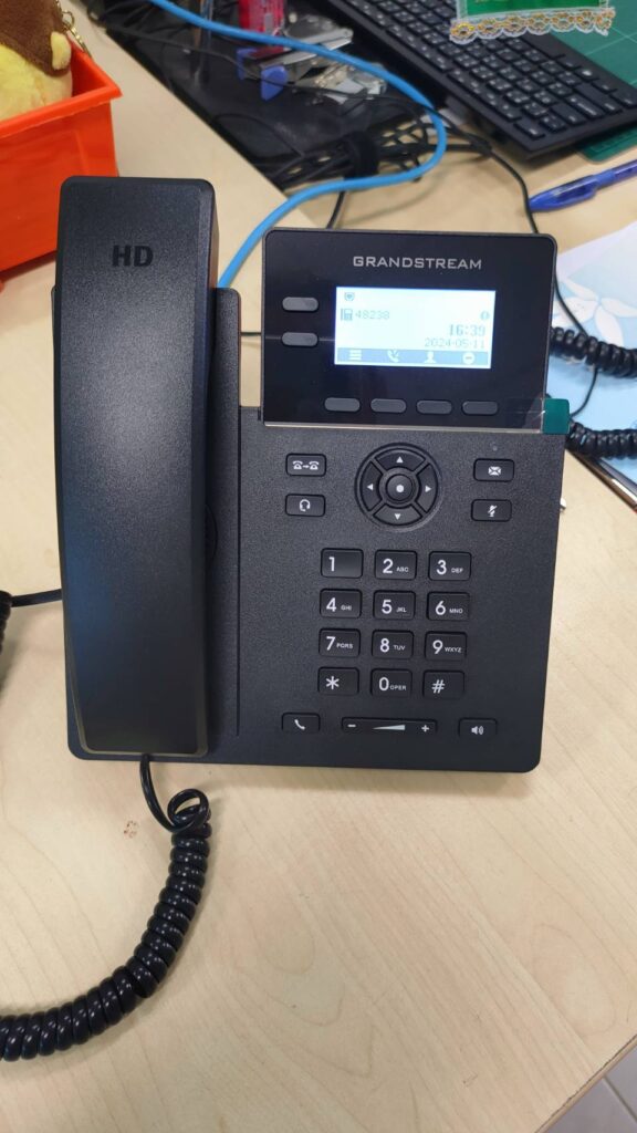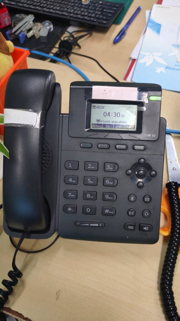 รายละเอียดการดำเนินงาน : จากการตรวจสอบพบว่าหัวเครื่องโทรศัพท์ชำรุด ไม่สามารถรับค่า IP Address ได้ จึงดำเนินการเปลี่ยนหัวเครื่องใหม่